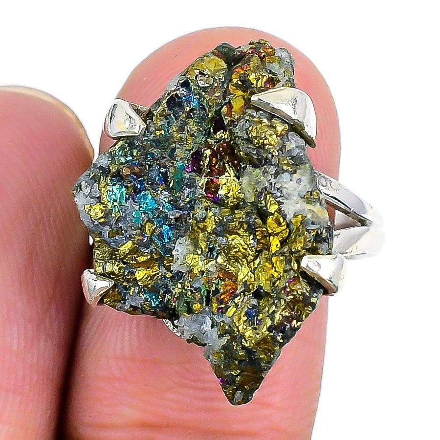 Friendship Day Deal Natural Pyrite Druzy Statement Channel Set Ring 925 Silver