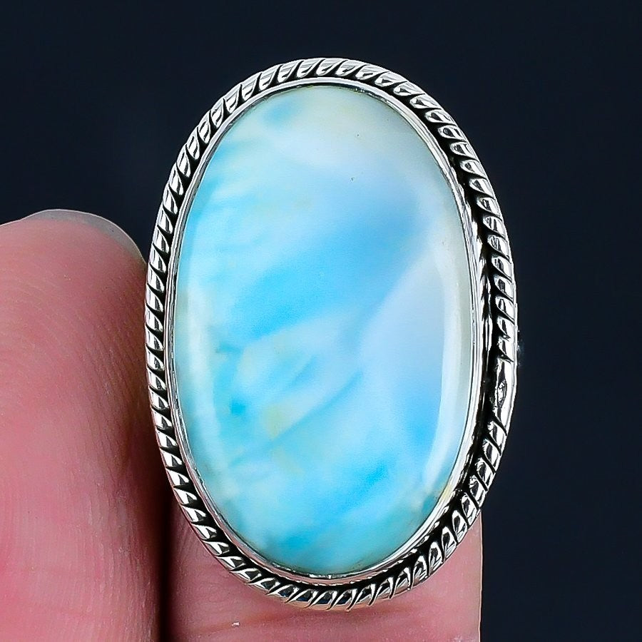 Natural Republic Larimar 925 Silver Statement Bezel Daughter Ring Jewelry Size 8