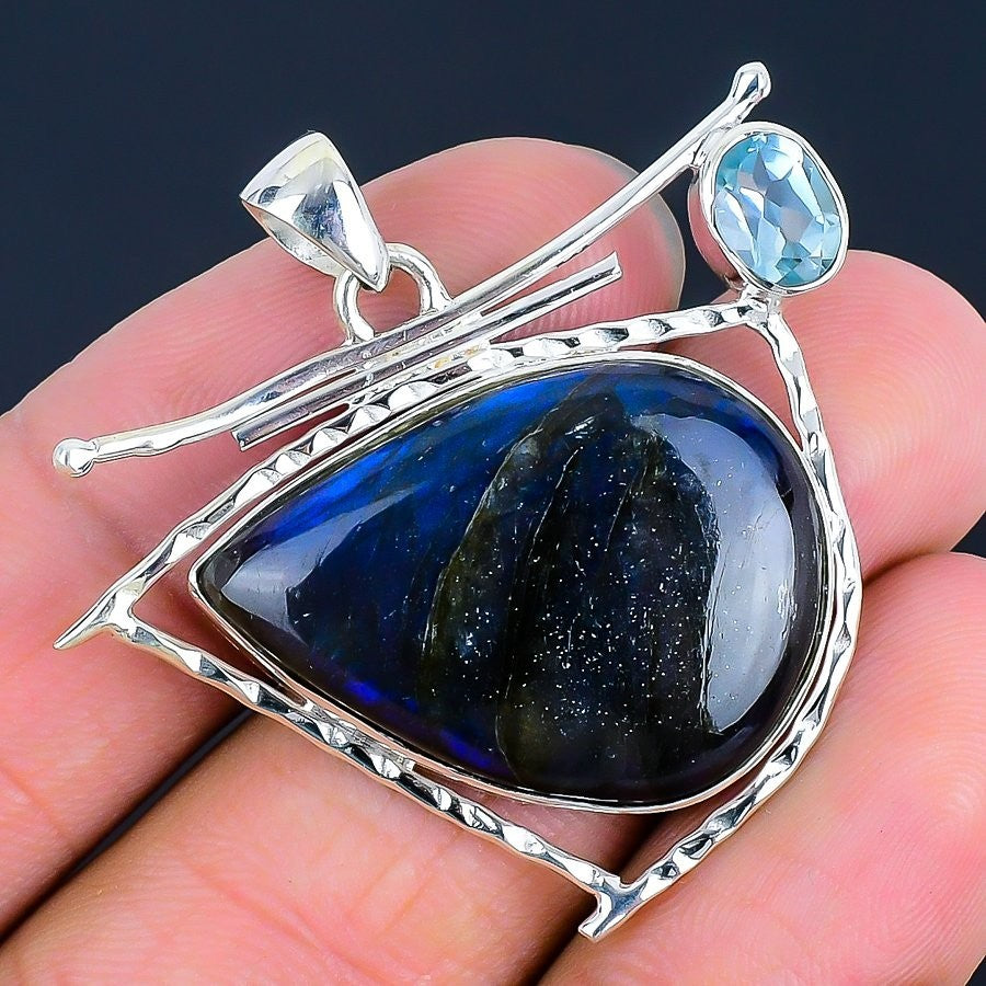 Third Eye Chakra Labradorite Stone 925 Sterling Silver Artisan Bezel New Pendant