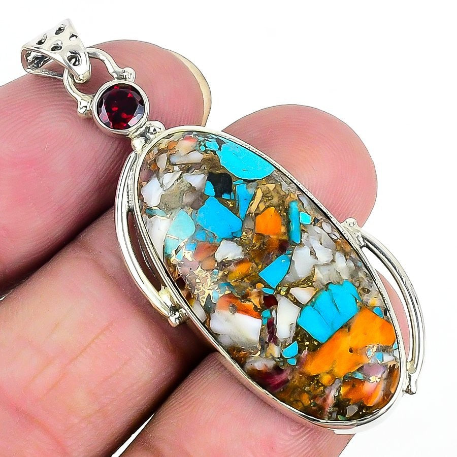 Spiny Oyster Turquoise Gemstone Friendship Day Wife Pendant Jewelry 925 Silver