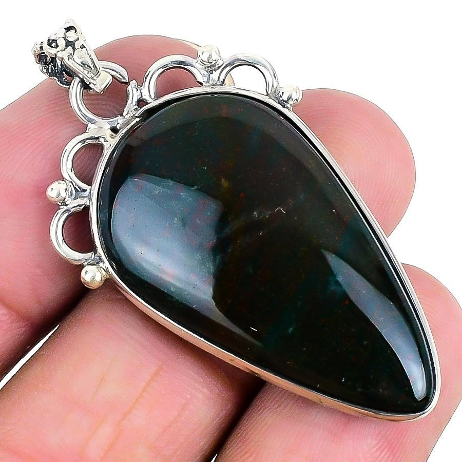 March Birth Natural Bloodstone Bezel Friendship Day Pendant Jewelry Solid Silver