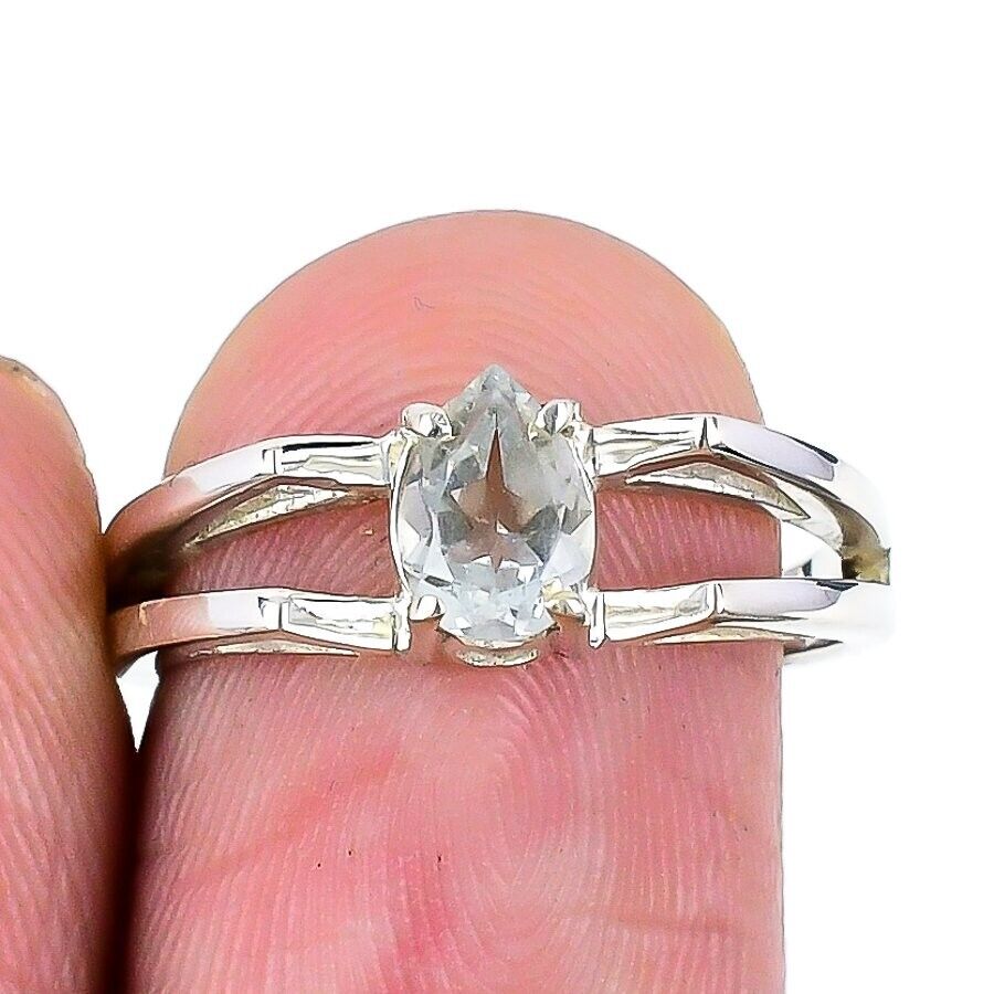 Natural White Topaz Solid Sterling Silver Elegant Artisan Statement Ring US 7.5