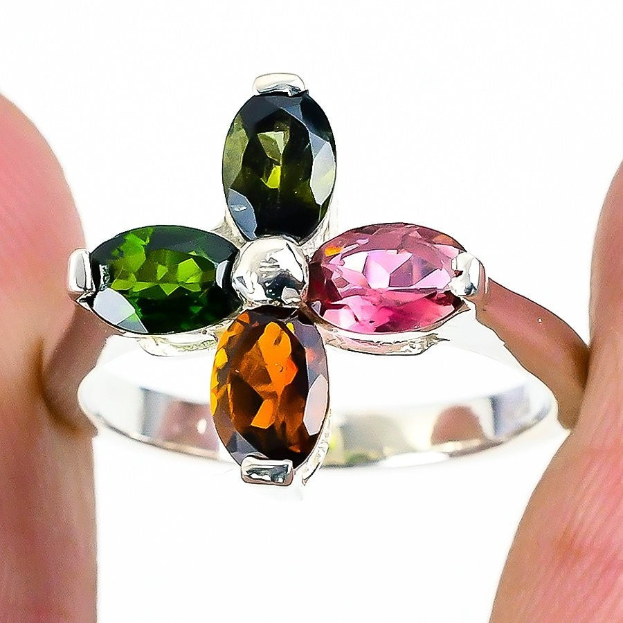 Heart Chakra Green Tourmaline Gemstone 925 Sterling Silver Statement Sister Ring