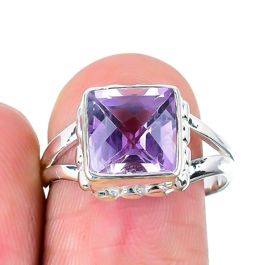 Pink Amethyst Gemstone February Statement Friendship Day Ring Solid Silver US 9