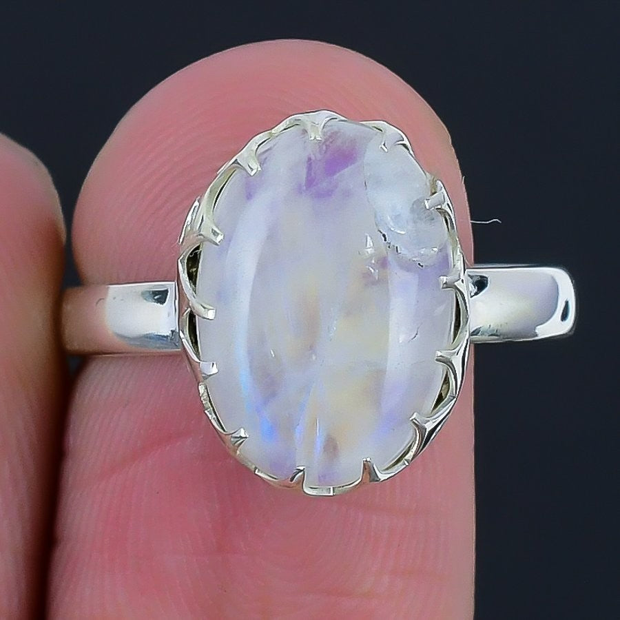 Crown Chakra Moonstone Gemstone 925Ā SolidĀ Silver Wedding New Statement Ring US 8