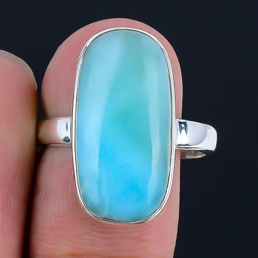 Larimar Gemstone Solid Sterling Silver Statement Anniversary Bezel Ring Size 9