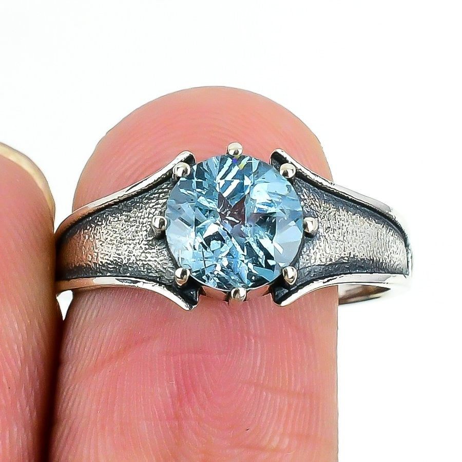 Natural Swiss Blue Topaz 925 Sterling Silver Bezel Statement New Ring Size 7.5