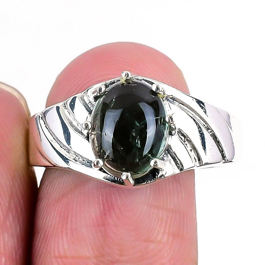 Natural Black Rutile 925 Silver Handcrafted Statement Friend Gift Ring US 6.5