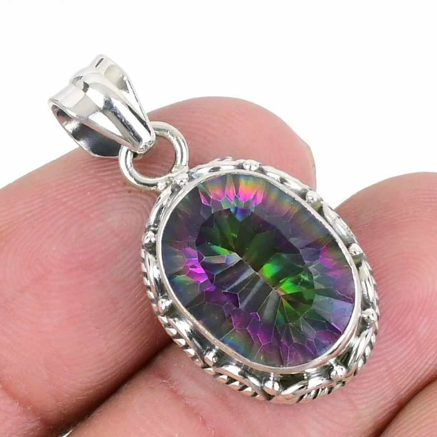 Rainbow Mystic Topaz Gemstone Sterling Silver Handmade Birthday Pendant Jewelry