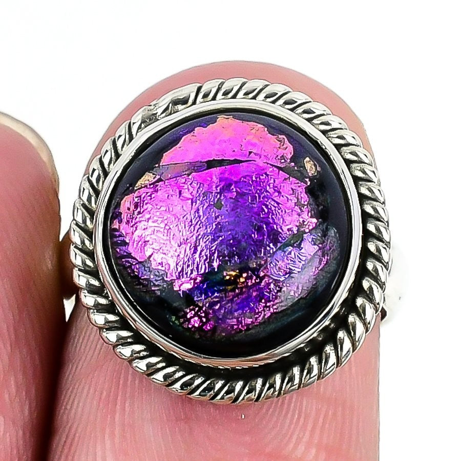 Mexican Dico Glass Stone Solid Sterling Silver Statement New Ring Jewelry US 5.5