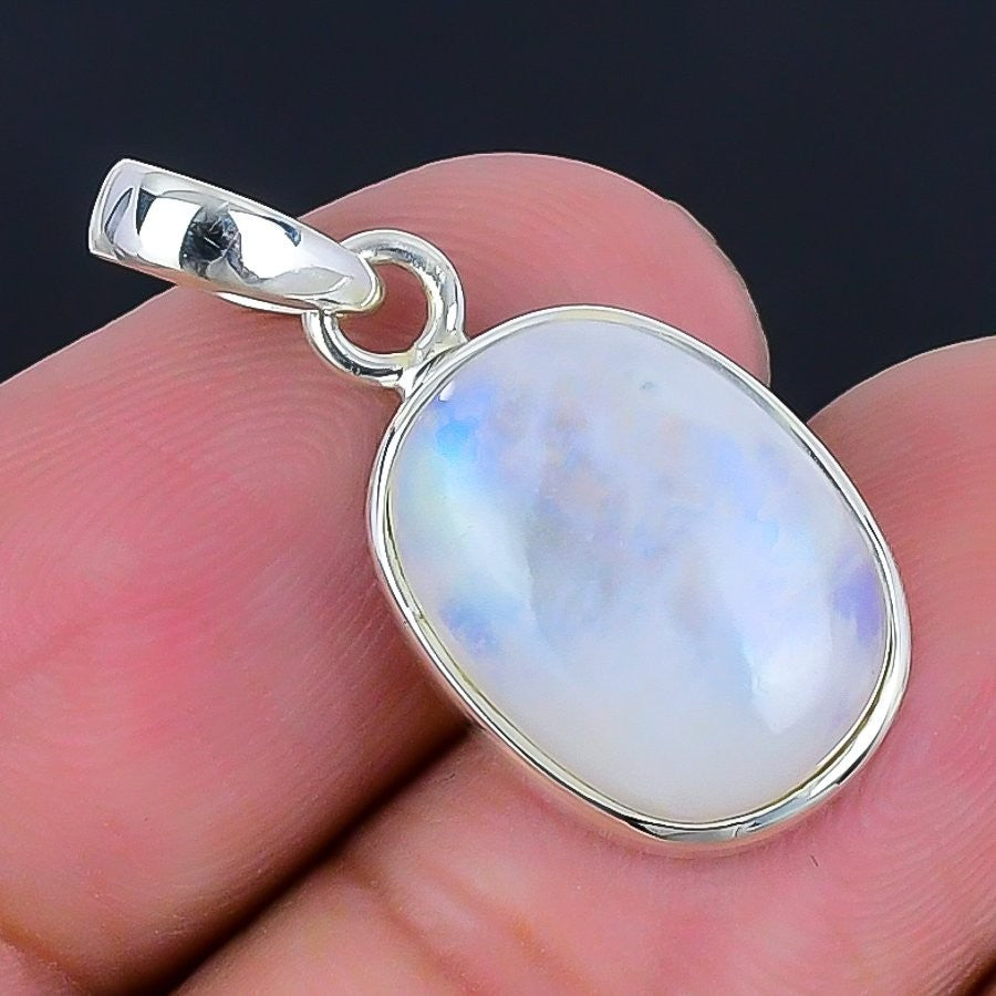 Rainbow Moonstone Stone 925Ā SolidĀ Silver New Ethnic Sisters Day Pendant Jewelry