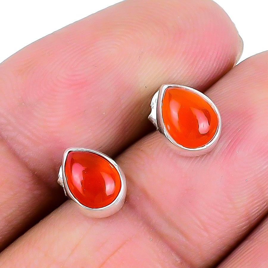 Orange Carnelian Stone 925 Sterling Silver Stud Sacral Chakra Earrings Jewelry