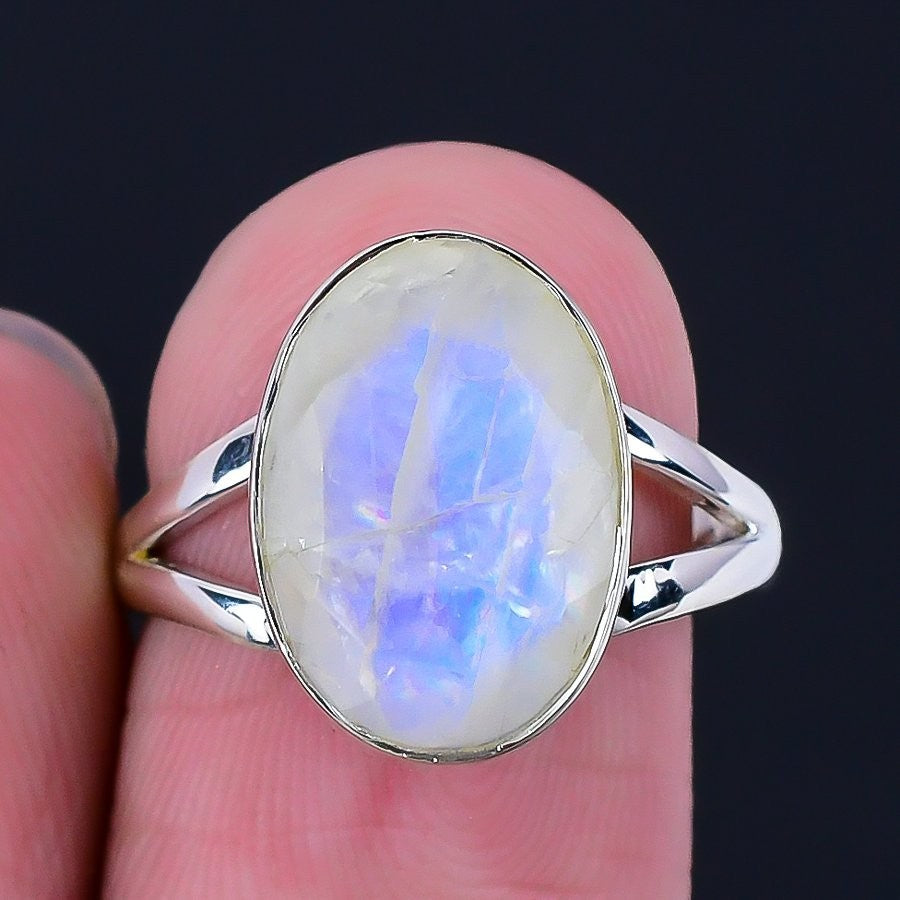 Natural Rainbow Moonstone Wife Cluster Ring Jewelry Size 8 Solid Sterling Silver