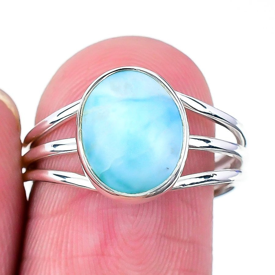 Republic Larimar Gemstone 925 Silver Elegant Artisan Boho Cluster Daughter Ring