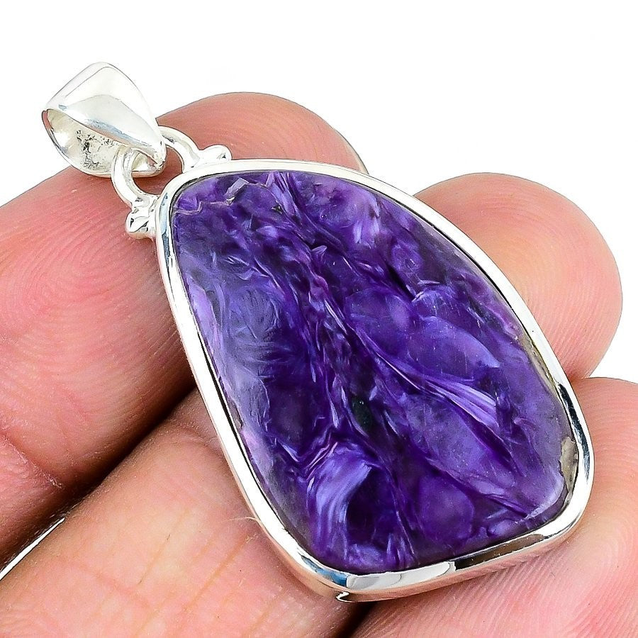 Russian Charoite Gemstone 925 Silver Sister Engagement Bezel New Pendant Jewelry
