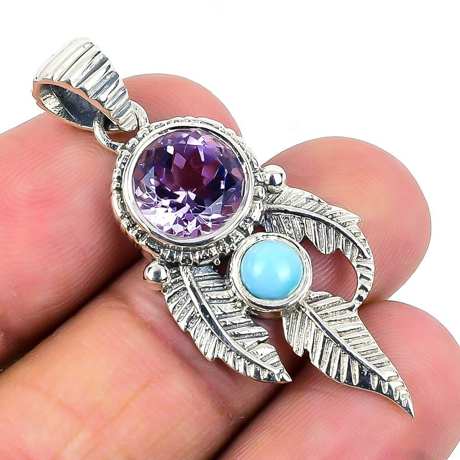 February Amethyst Gemstone Solid Sterling Silver Engagement Wife Pendant Jewelry