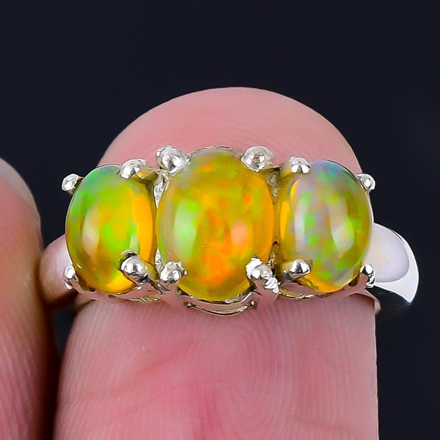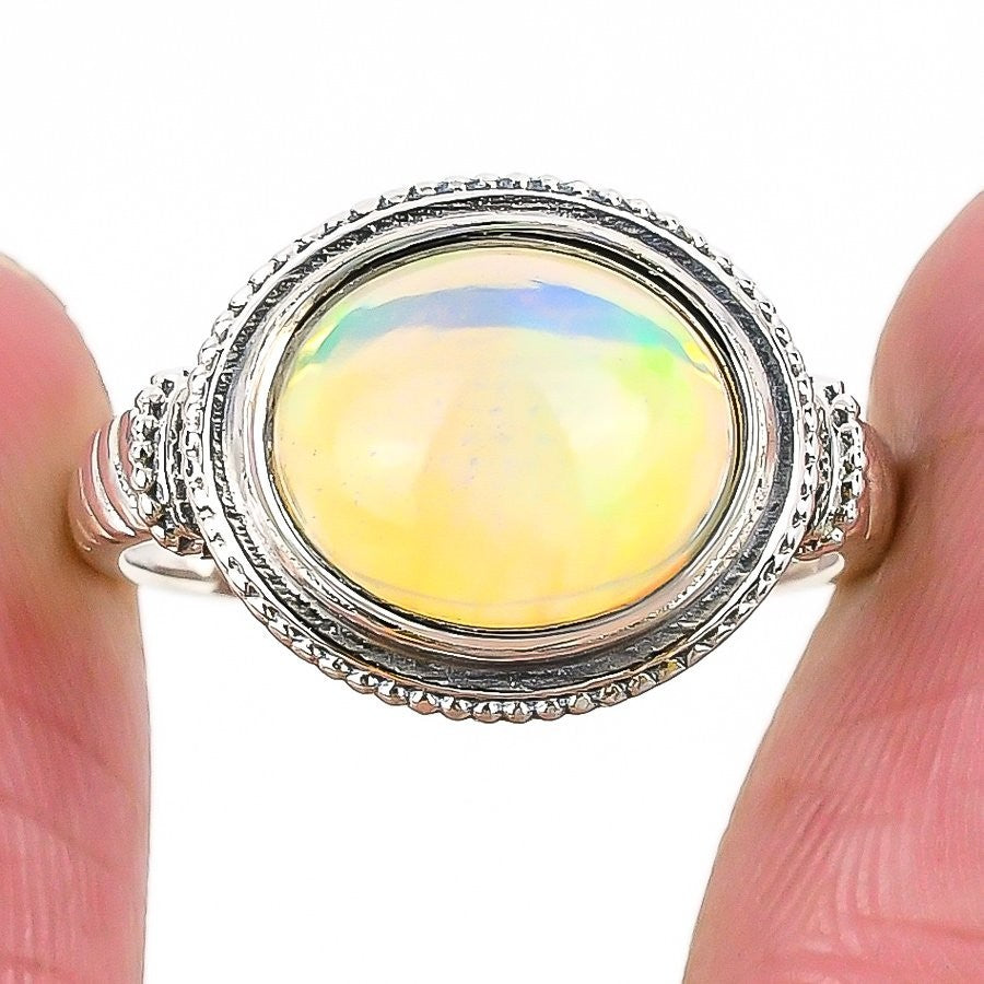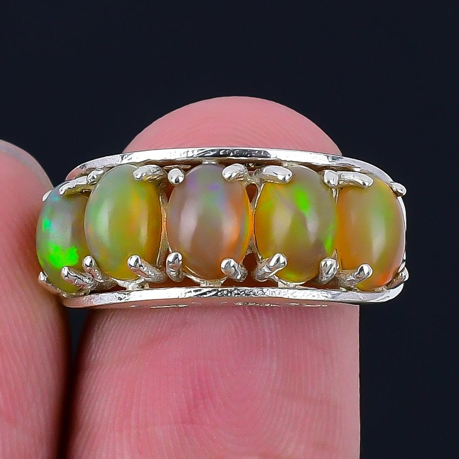 Ethiopian Opal Stone Solid Sterling Silver Wedding Statement Ring Jewelry Size 6
