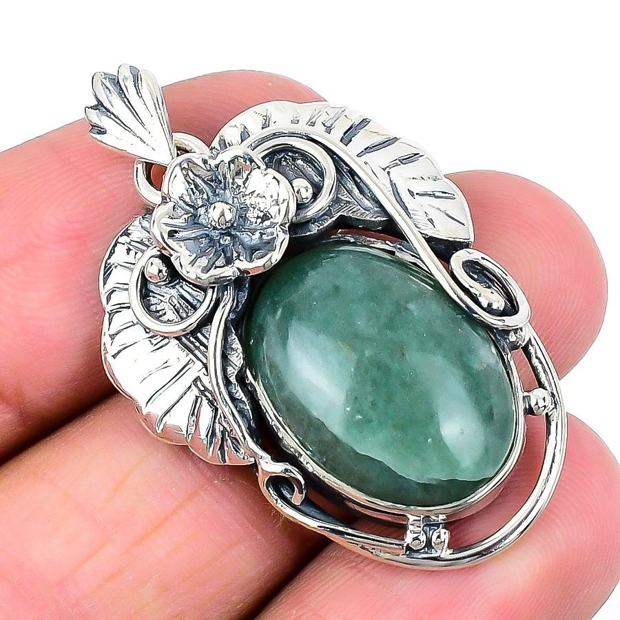 Heart Chakra Green Aventurine Stone Artisan Pendant Jewelry 925 Sterling Silver