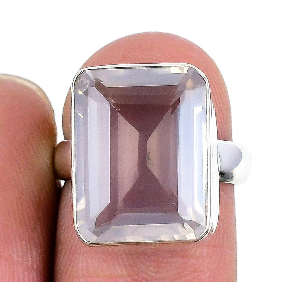 Natural Rose Quartz Solid Silver Handmade Statement Bezel Ring Jewelry US 6.5