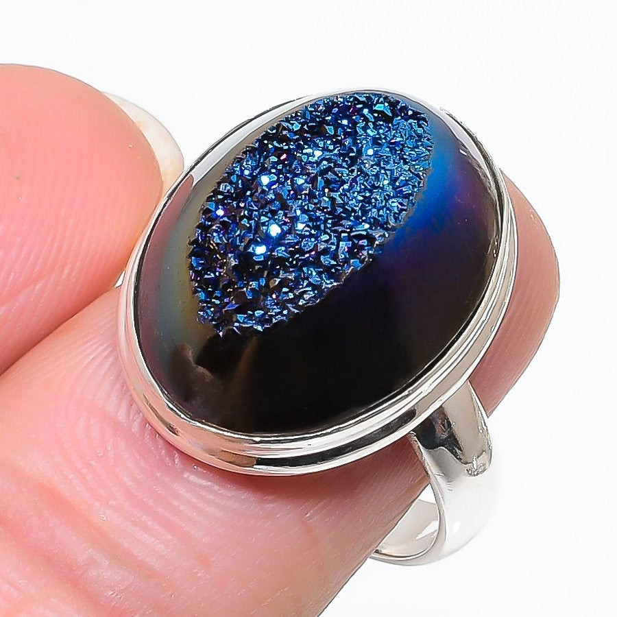 Peacock Aura Titanium Stone 925Ā SolidĀ Silver Wife Cluster Art Deco Ring Jewelry