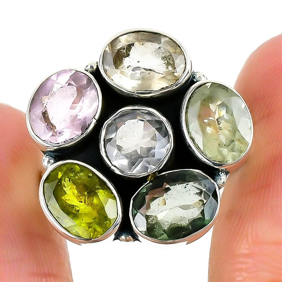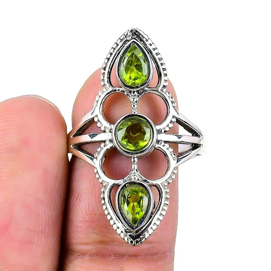 Natural Peridot 925 Sterling Silver Statement Sisters Gift Ring Jewelry US 8.5