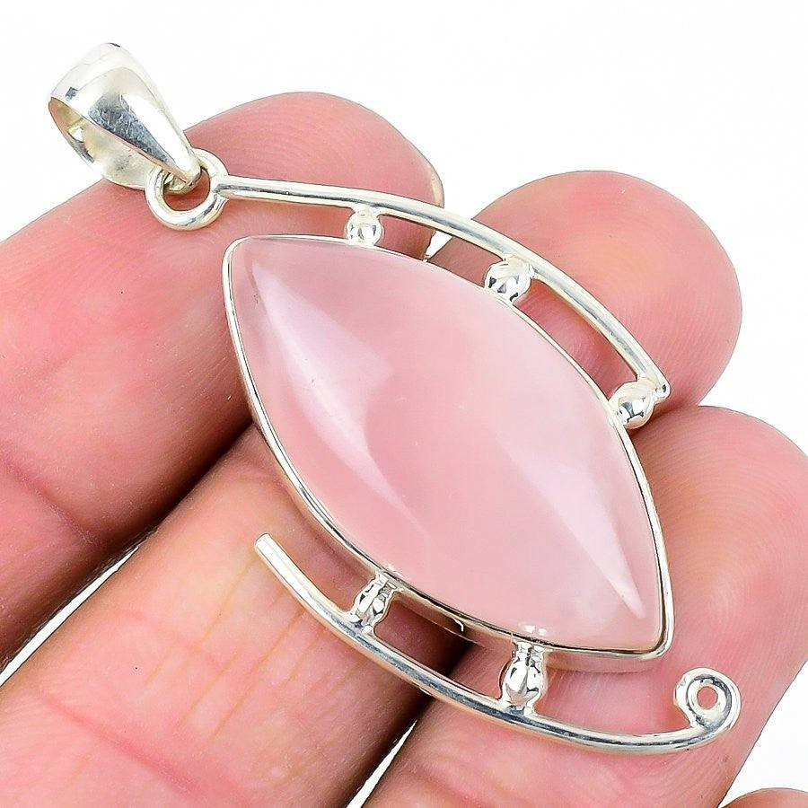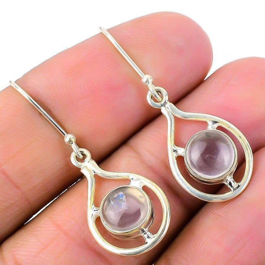 Natural Rose Quartz Sterling Silver Unique Dangle Drop Artisan Earrings Jewelry