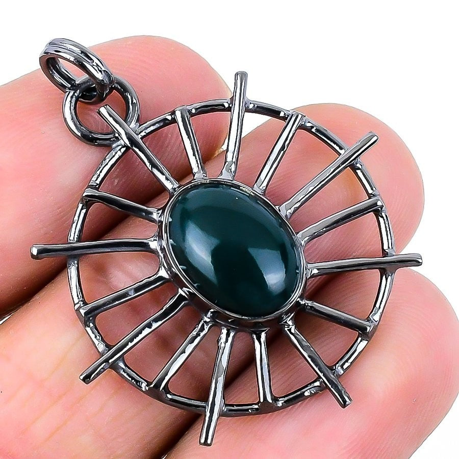 Heart Chakra Natural Green Aventurine Solid Silver Ethnic Trendy Wedding Pendant