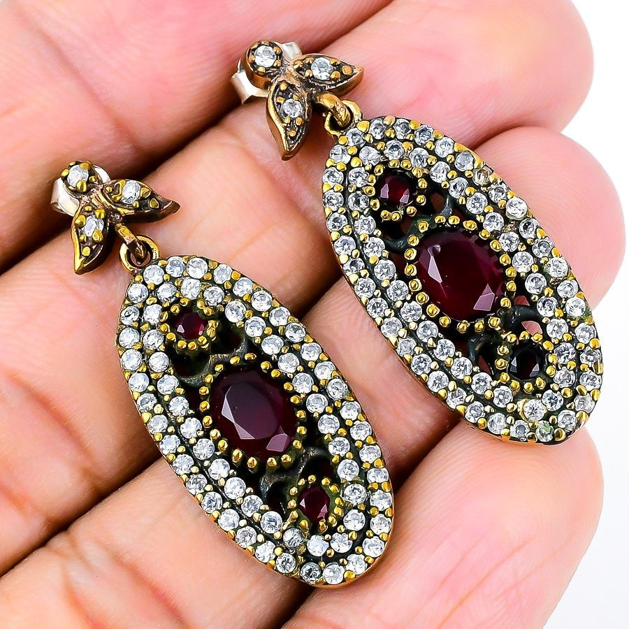 Friendship Day Sale Red Ruby Gemstone Drop Art Deco July New Earrings 925 Silver