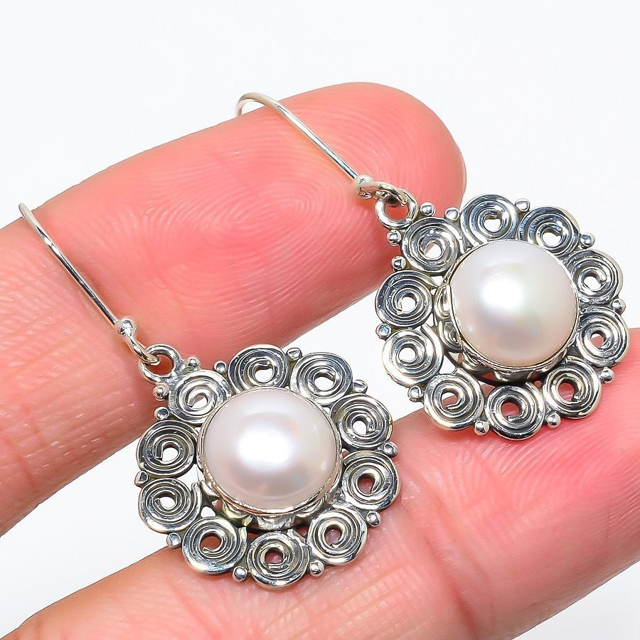 River Pearl Stone 925Ā SolidĀ Silver Trendy Daughter Handmade Dangle Hook Earrings