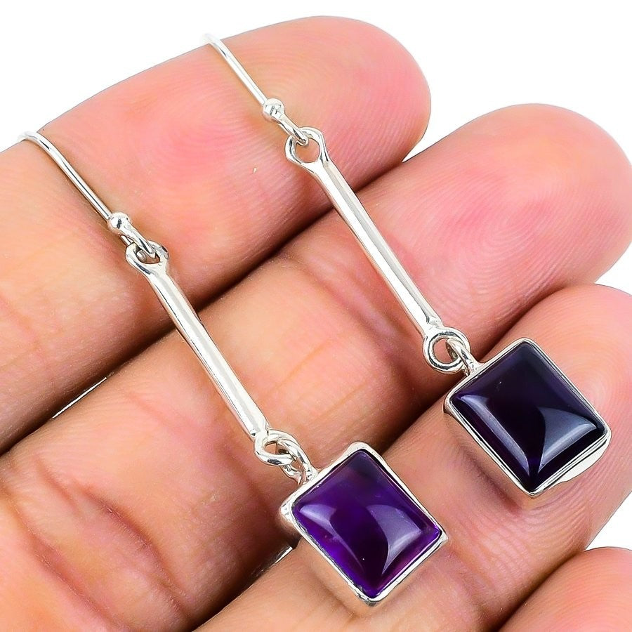 Natural Sage Amethyst Solid Sterling Silver Hook Drop Sister Earrings Jewelry