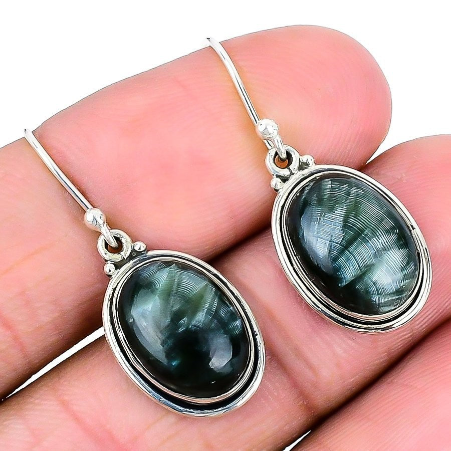 Seraphinite Gemstone Sister Drop Engagement Hook Boho Earrings 925Ā SolidĀ Silver