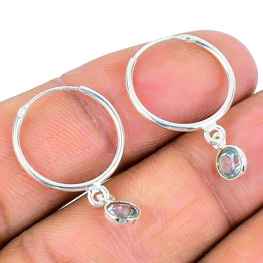 Swiss Blue Topaz Gemstone Sterling Silver Boho Dangle Drop Hook Earrings Jewelry