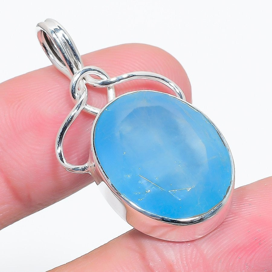 Aquamarine Stone Handcrafted Mother Trendy Birthday Pendant Jewelry Solid Silver