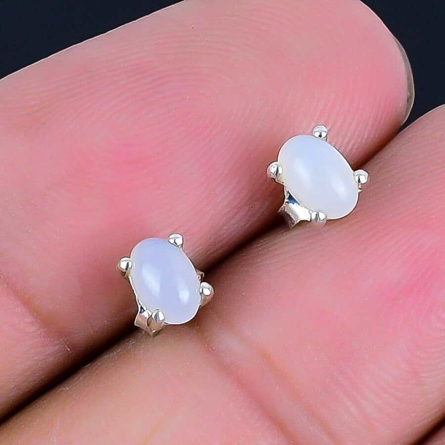 Moonstone Gemstone Solid Sterling Silver Stud Anniversary Handcrafted Earrings