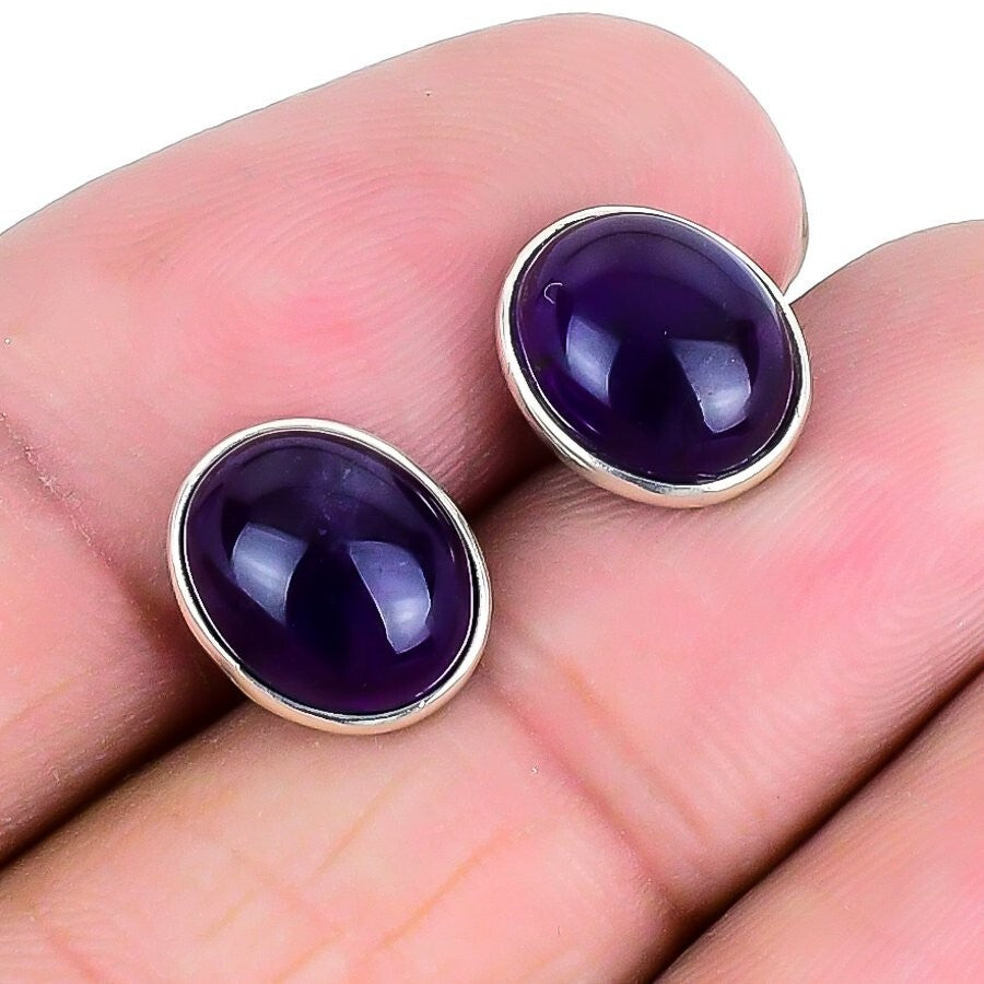 Sage Amethyst Gemstone 925 Sterling Silver Stud Mother Crown Chakra New Earrings