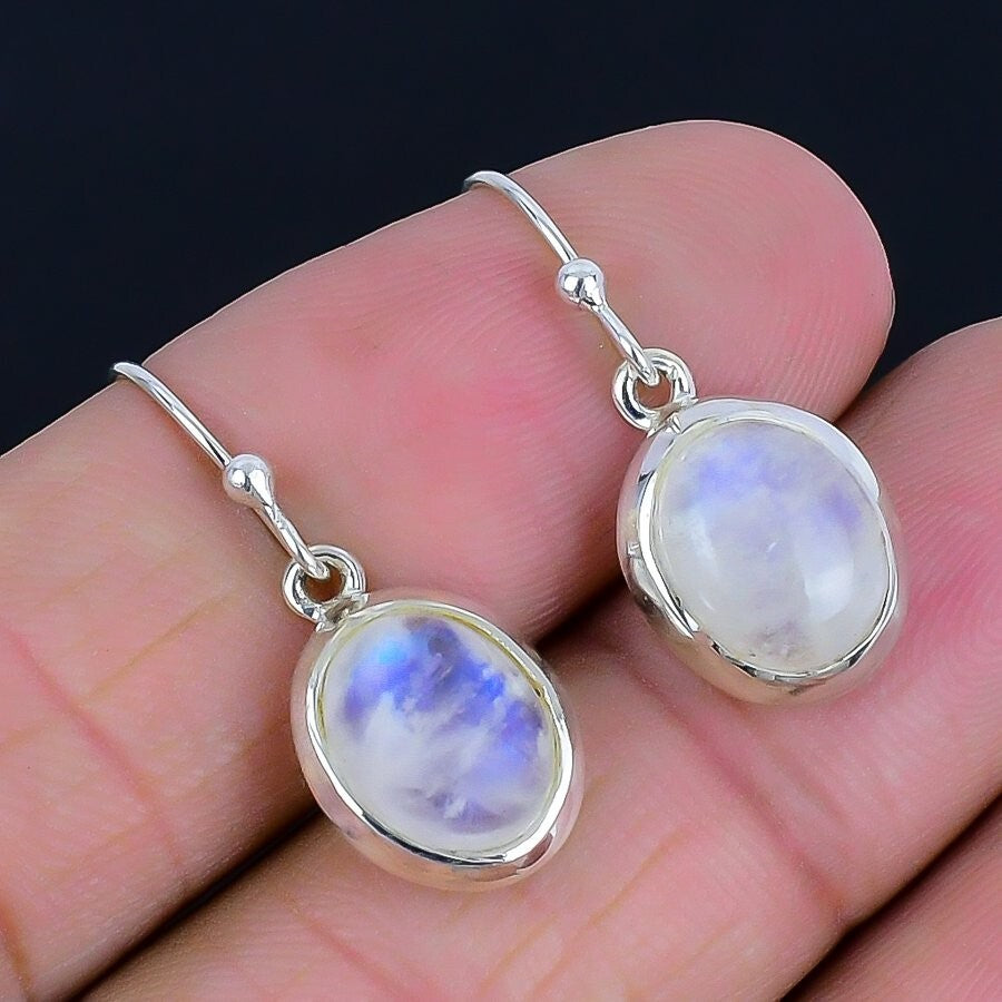 Crown Chakra Moonstone Stone Solid Silver Wedding Mother Dangle Hook Earrings