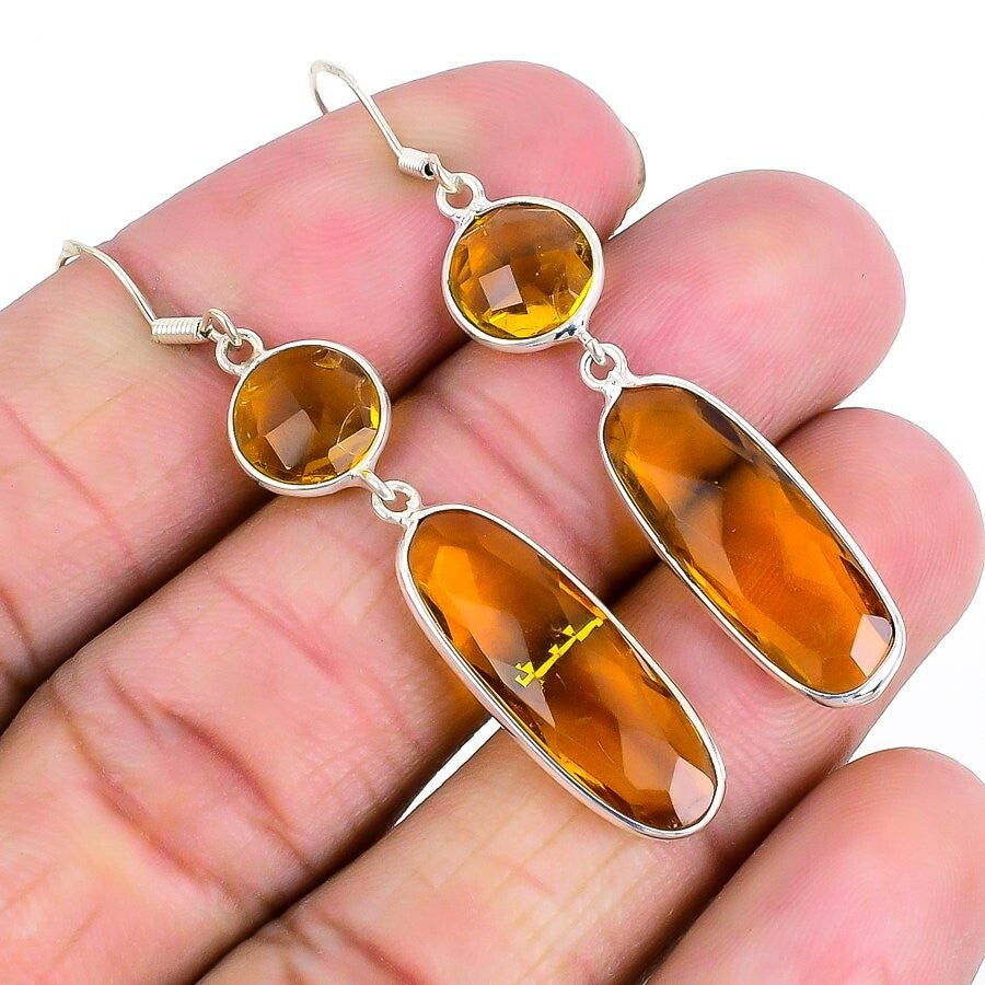 Honey Topaz Gemstone Sterling Silver Dangling Hook Engagement Handmade Earrings
