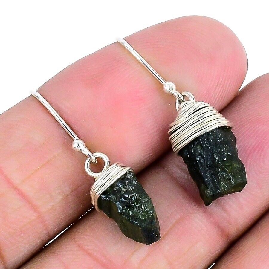 Moldavite Quartz Stone Artisan Daughter Dangle Drop Earrings Jewelry 925 Silver
