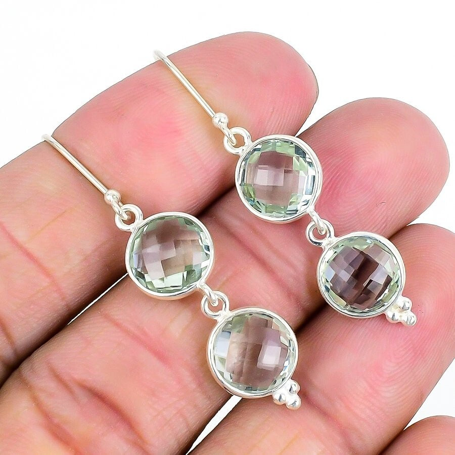 Green Amethyst Stone 925 Sterling Silver Engagement Drop Dangle Earrings Jewelry