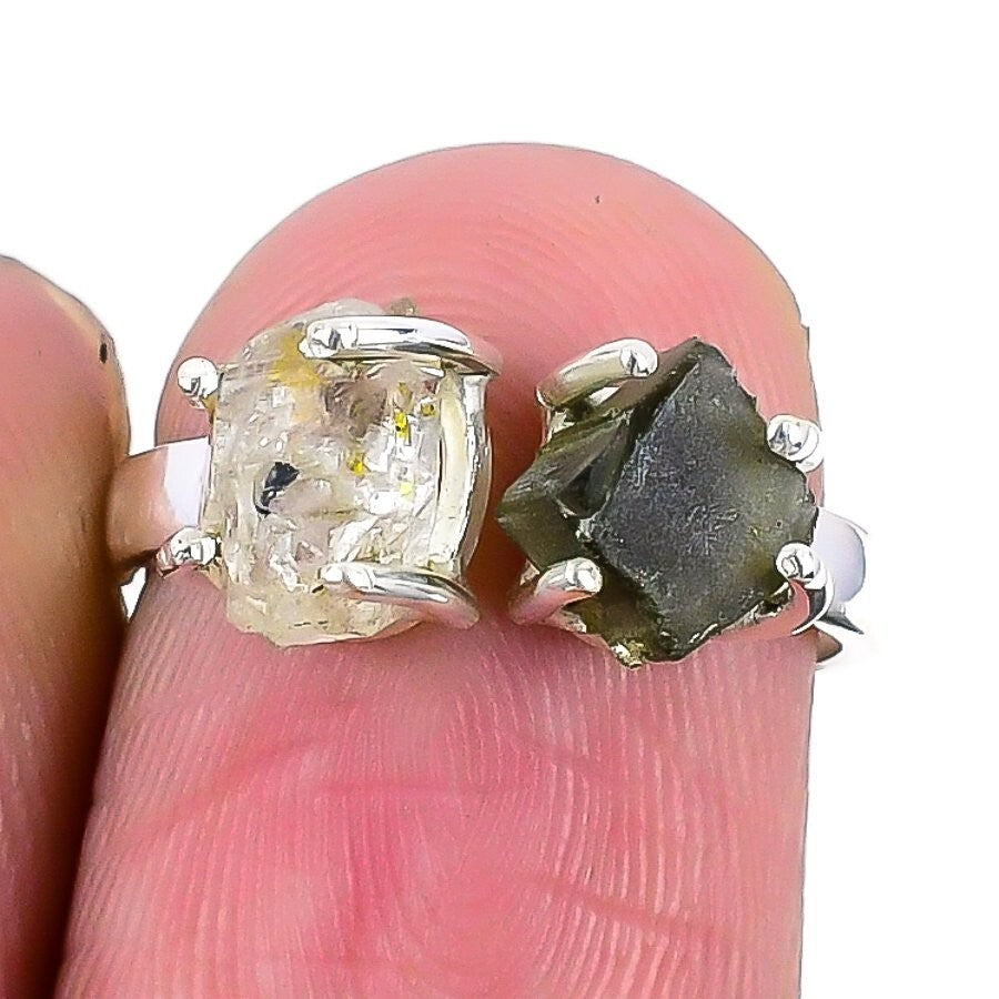Herkimer Daimond Gemstone Solid Silver Handmade Cluster Wife Ring Jewelry Size 6