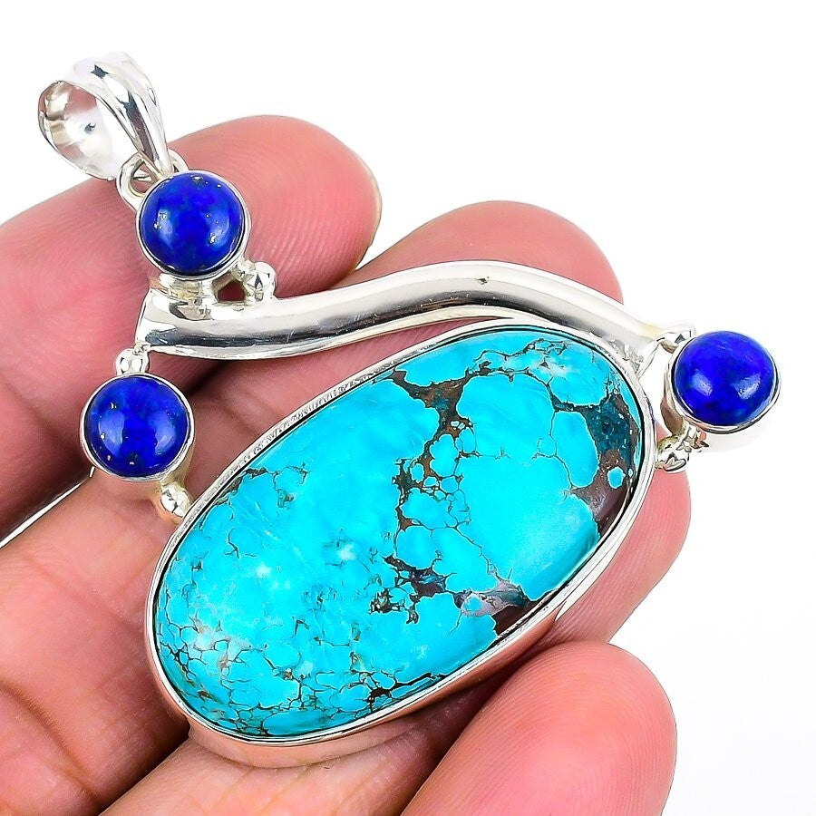 Natural Tibetan Turquoise 925Ā SolidĀ Silver Boho Channel Set New Pendant Jewelry