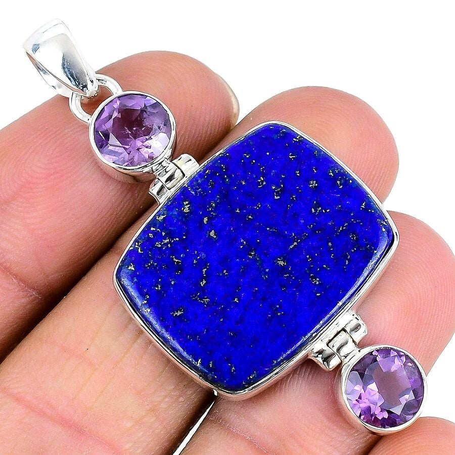 Lapis Lazuli Gemstone Sterling Silver Sister Bezel Birthday New Pendant Jewelry