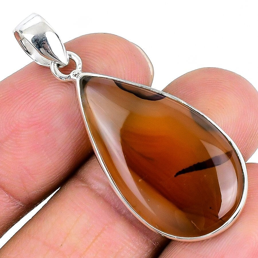 Natural Montana Agate 925 Sterling Silver Art Deco Bezel Wedding Pendant Jewelry
