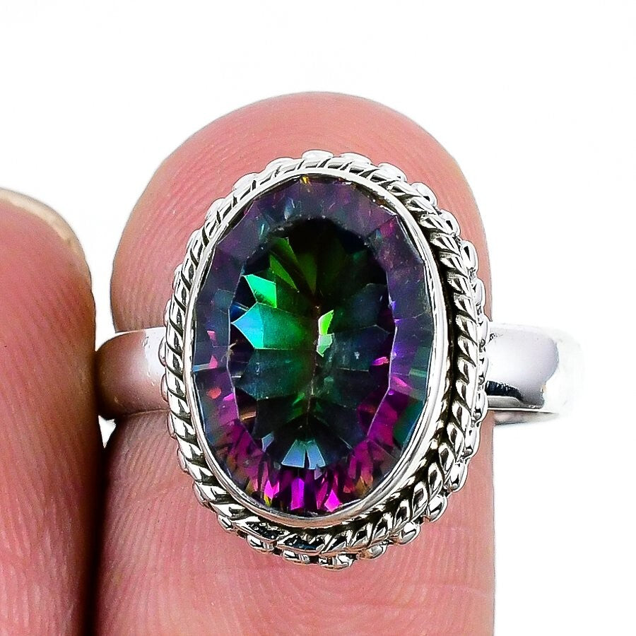 Mystic Topaz Stone Solid Sterling Silver Statement Bezel Boho Ring Jewelry US 9