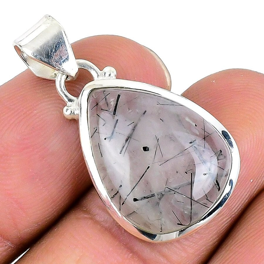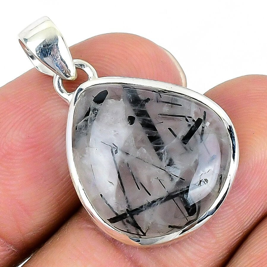 Natural Black Rutile Solid Sterling Silver Handcrafted Unique Mother New Pendant