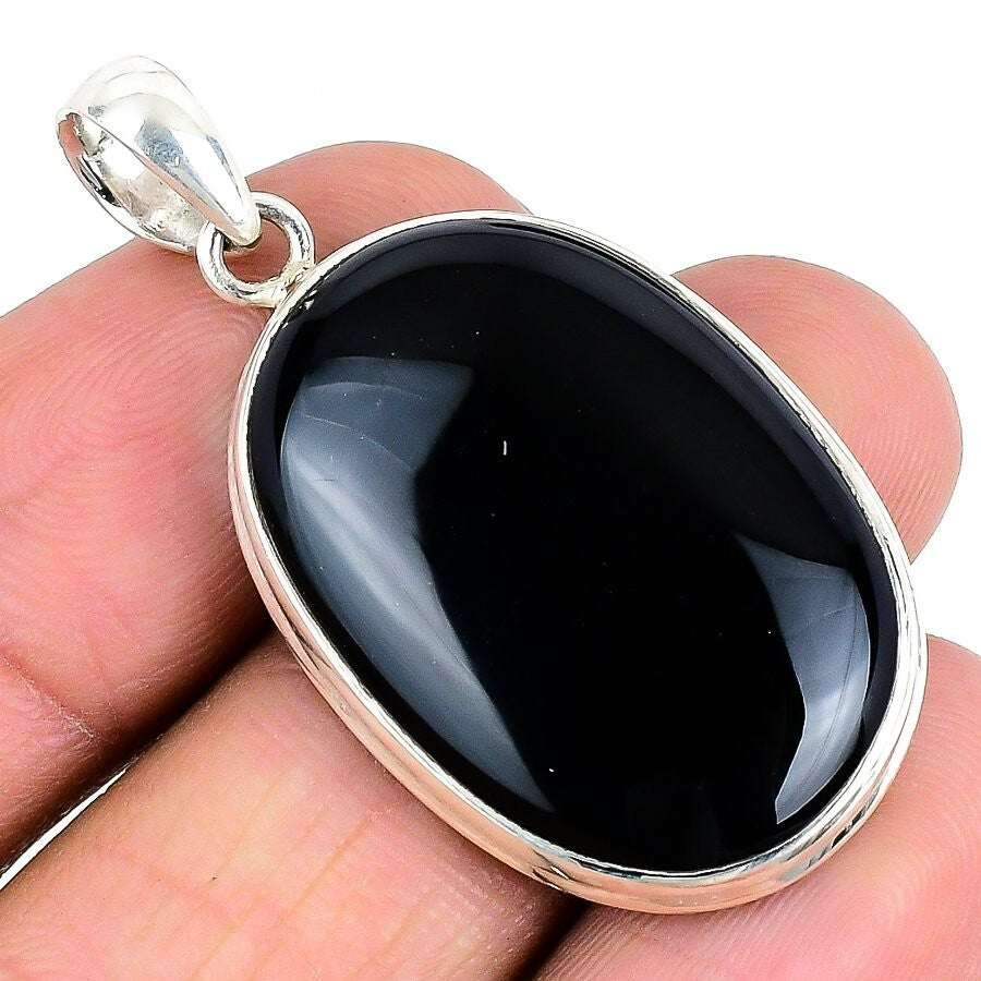 Natural Black Onyx 925 Sterling Silver Bezel Mother Unique New Pendant Jewelry
