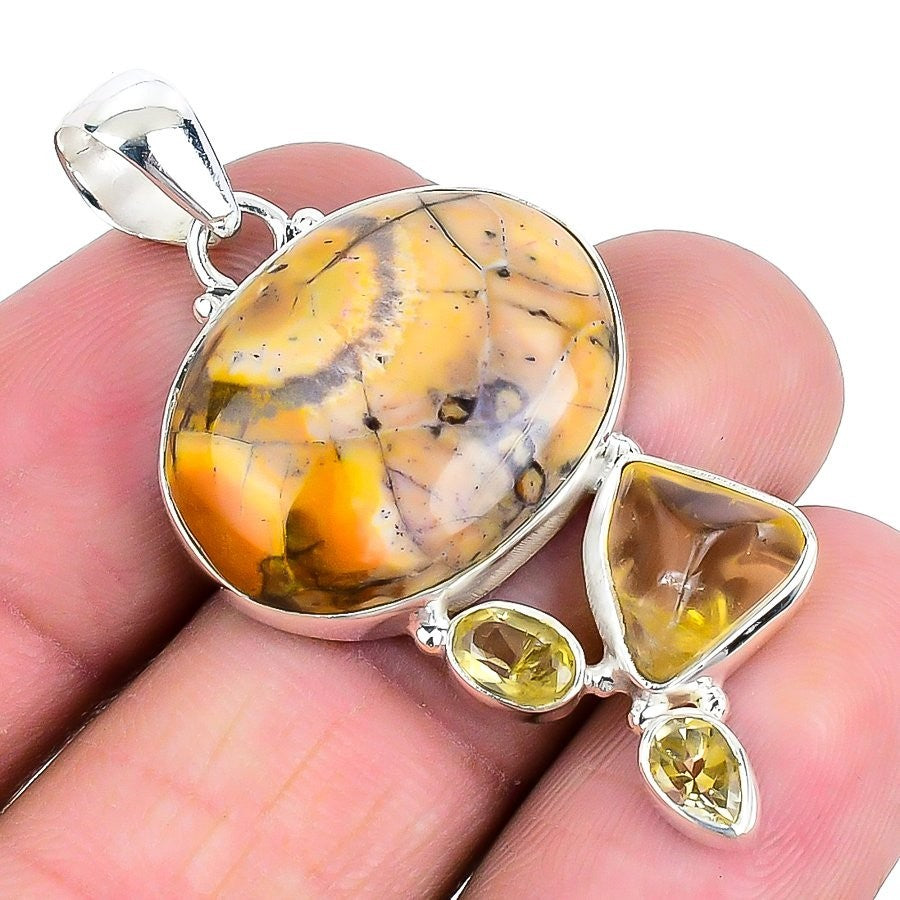 Bird Eye Jasper Stone Sterling Silver Bezel Engagement Mother Birthday Pendant