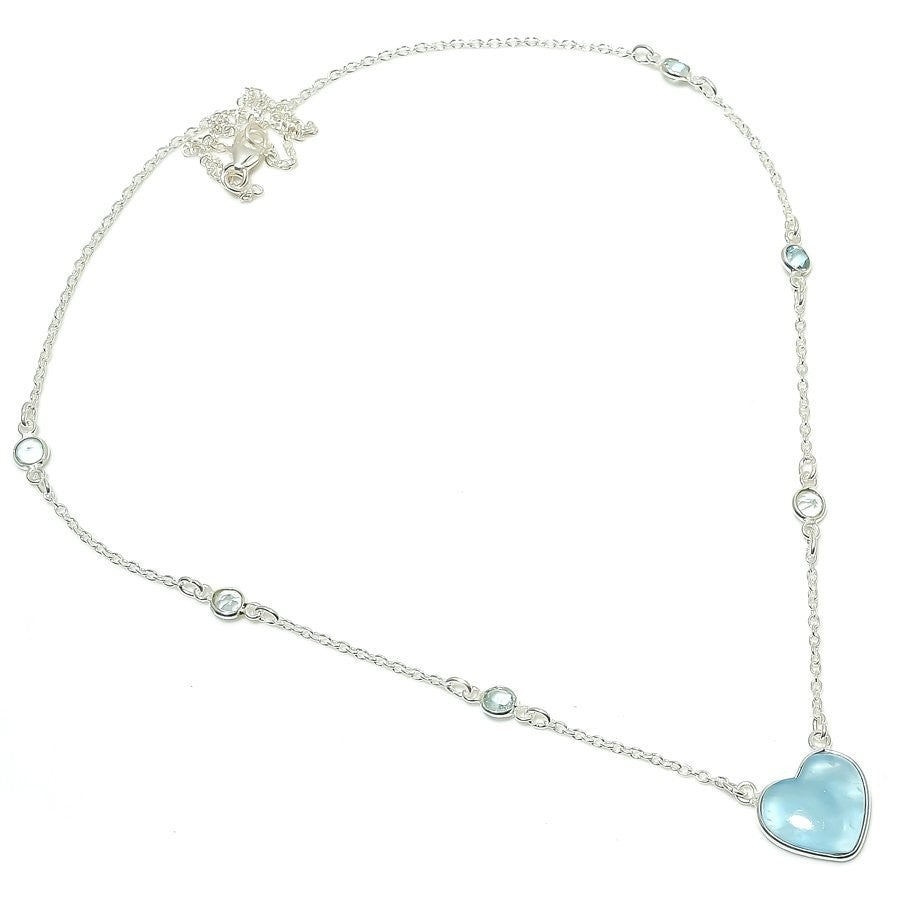 Aquamarine Gemstone Sterling Silver Mother Chain Throat Chakra Necklace Jewelry