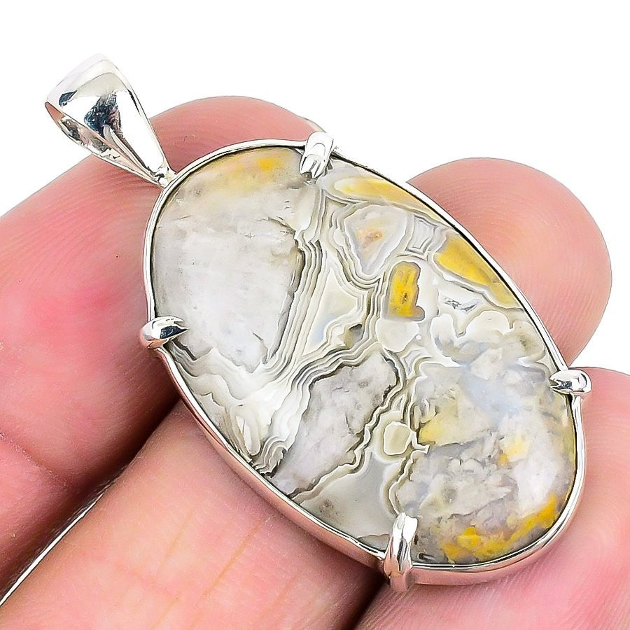 Natural Crazy Lace Agate 925 Sterling Silver Wife Handcrafted Bezel New Pendant