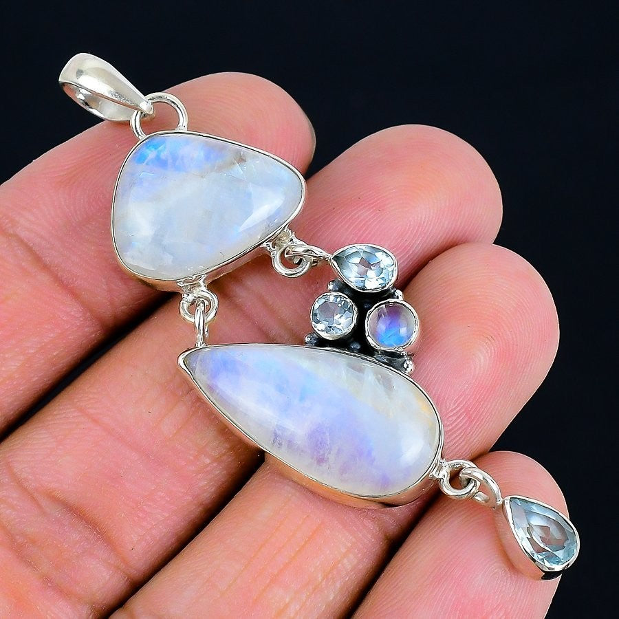 Moonstone moonface Gemstone 925 Silver Anniversary Friend Gift Pendant Jewelry